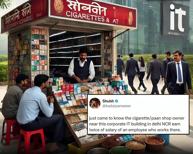 Right outside a bustling IT office in Delhi, a humble paan and cigarette shop is rewriting the rules of success. While suited professionals walk into glass towers, this shop owner earns twice their monthly salary—simply by selling essentials, consistently. This isn’t just a quirky fact—it’s a powerful reminder that success doesn’t always wear a tie. Sometimes, it sits on a stool, understands its customers, and builds wealth quietly. Entrepreneurship, no matter the scale, offers freedom and uncapped earning potential. It proves that smart, street-savvy hustle can outperform even the most secure 9-to-5. In the end, success is less about titles and more about value. Keep believing. Keep building—your path is yours to define.
